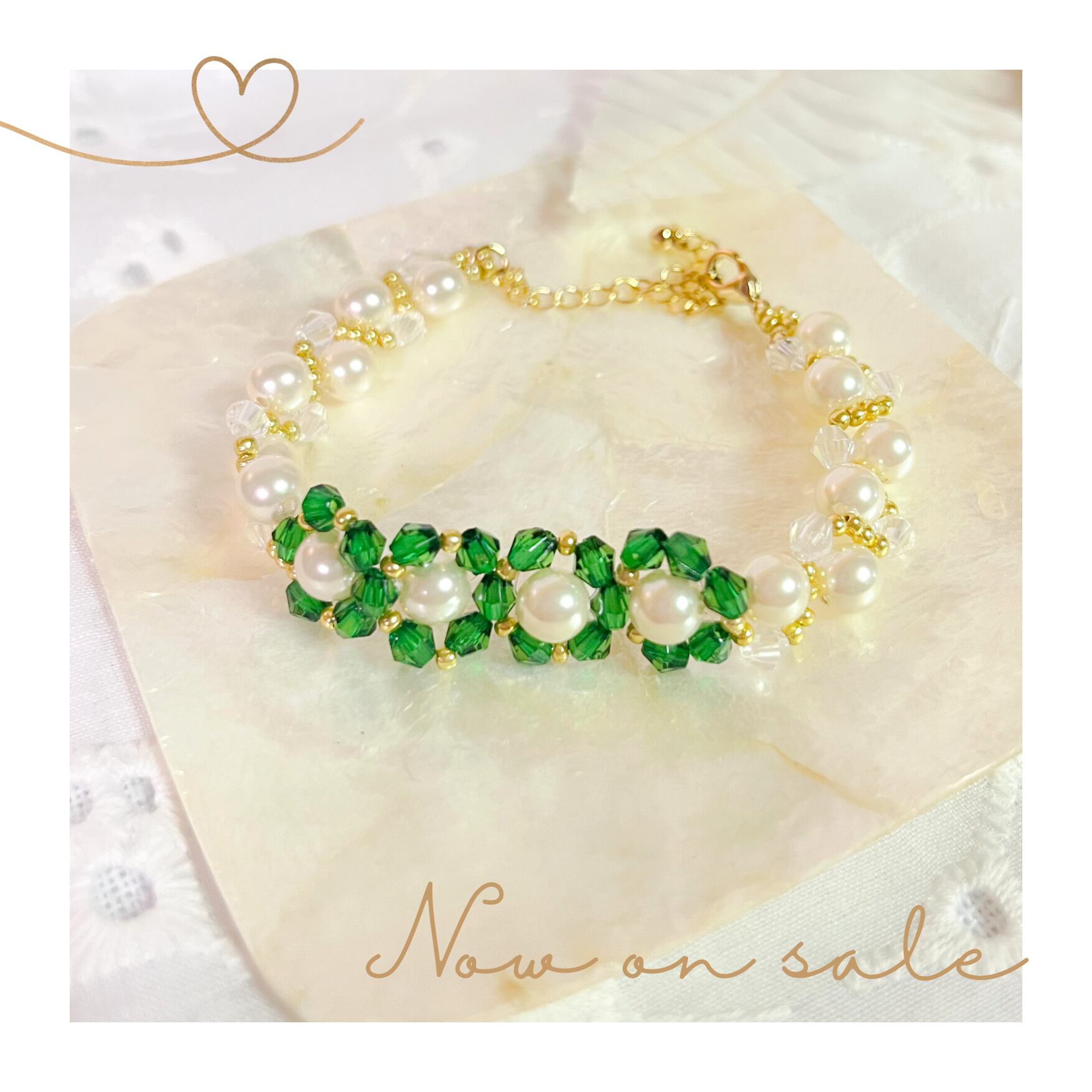 このビーズブレスレットは、一つ一つ丁寧に手作り