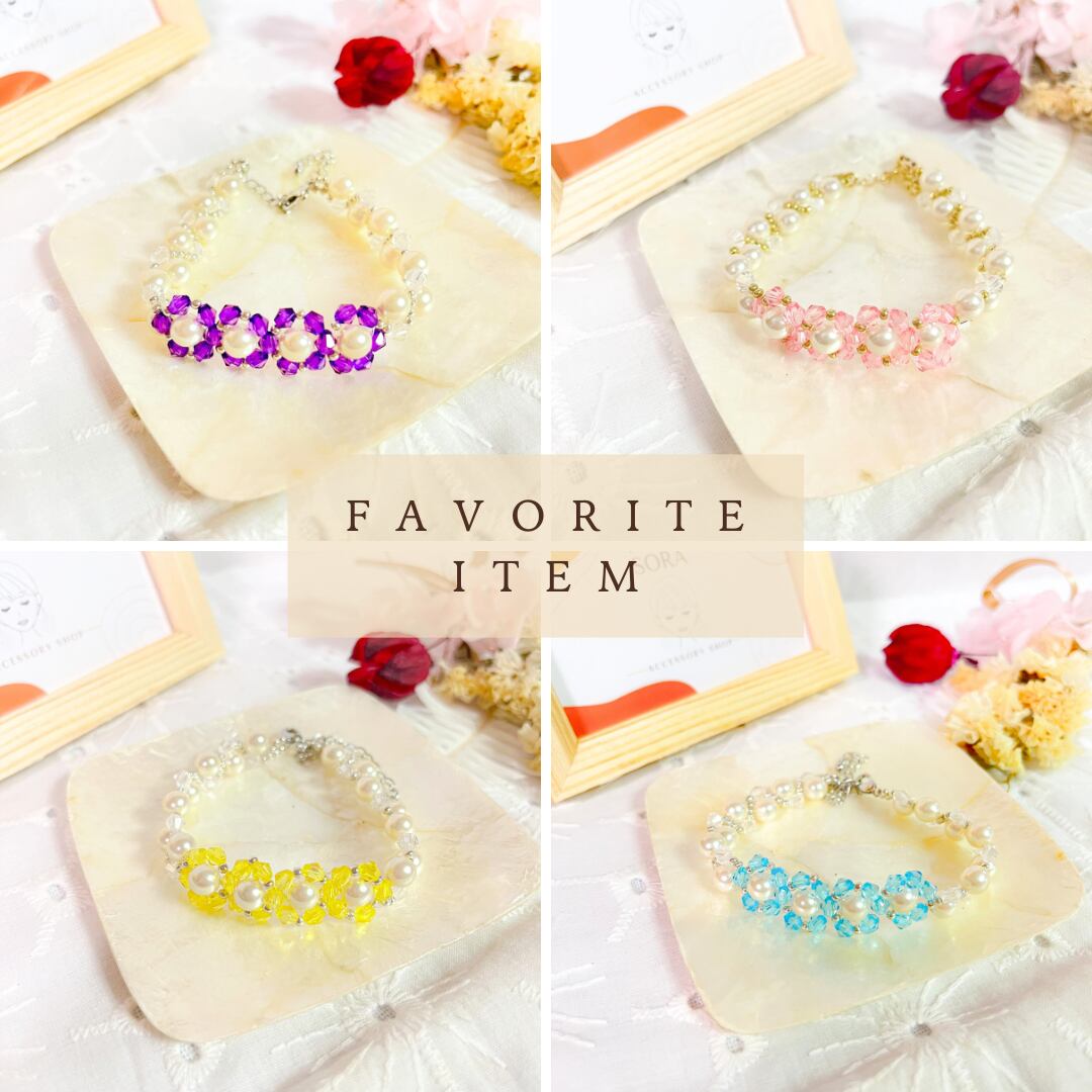 甘すぎないデザインのビーズブレスレット❁⃘*.゚