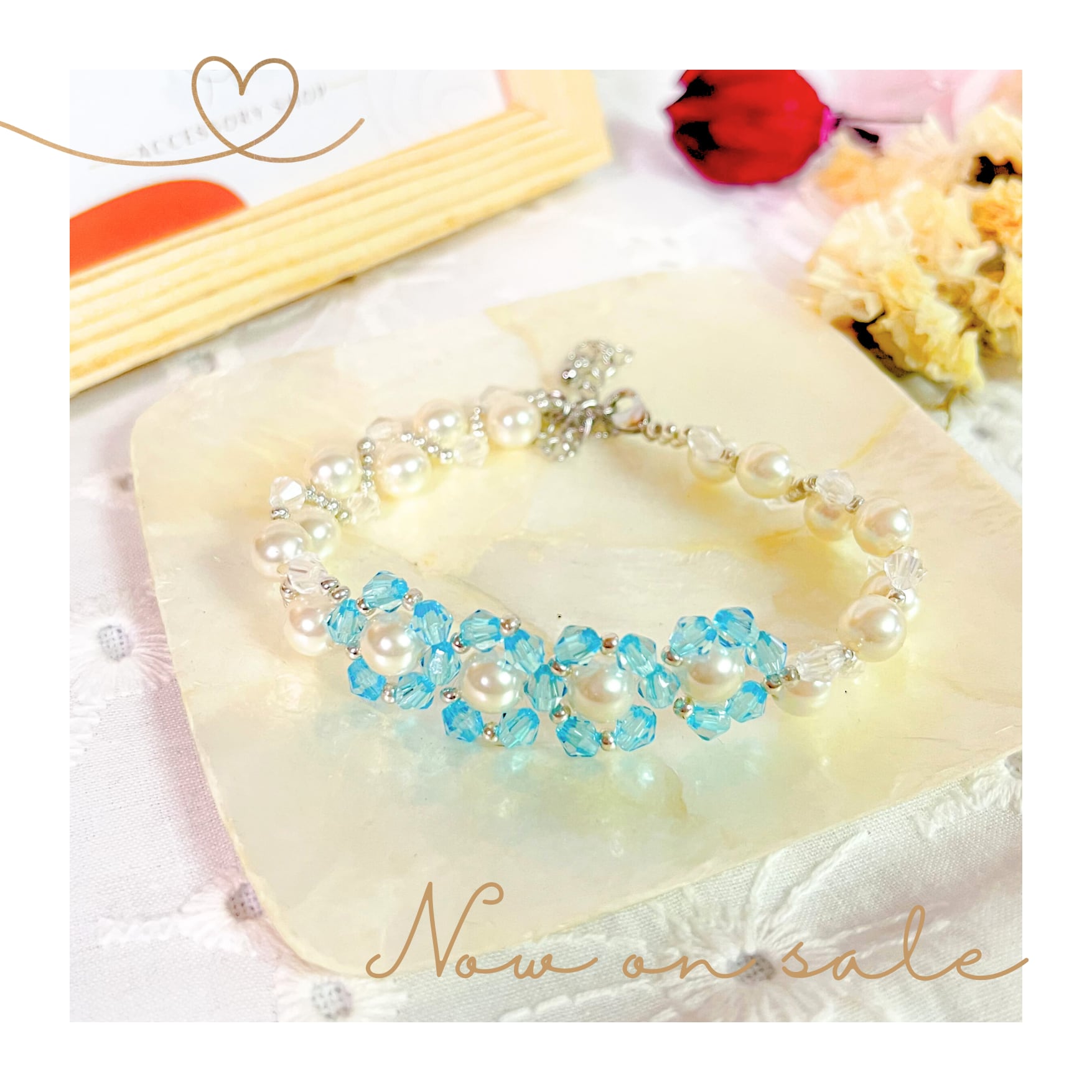 美しい透け感が特徴のビーズブレスレット❁⃘*.゚